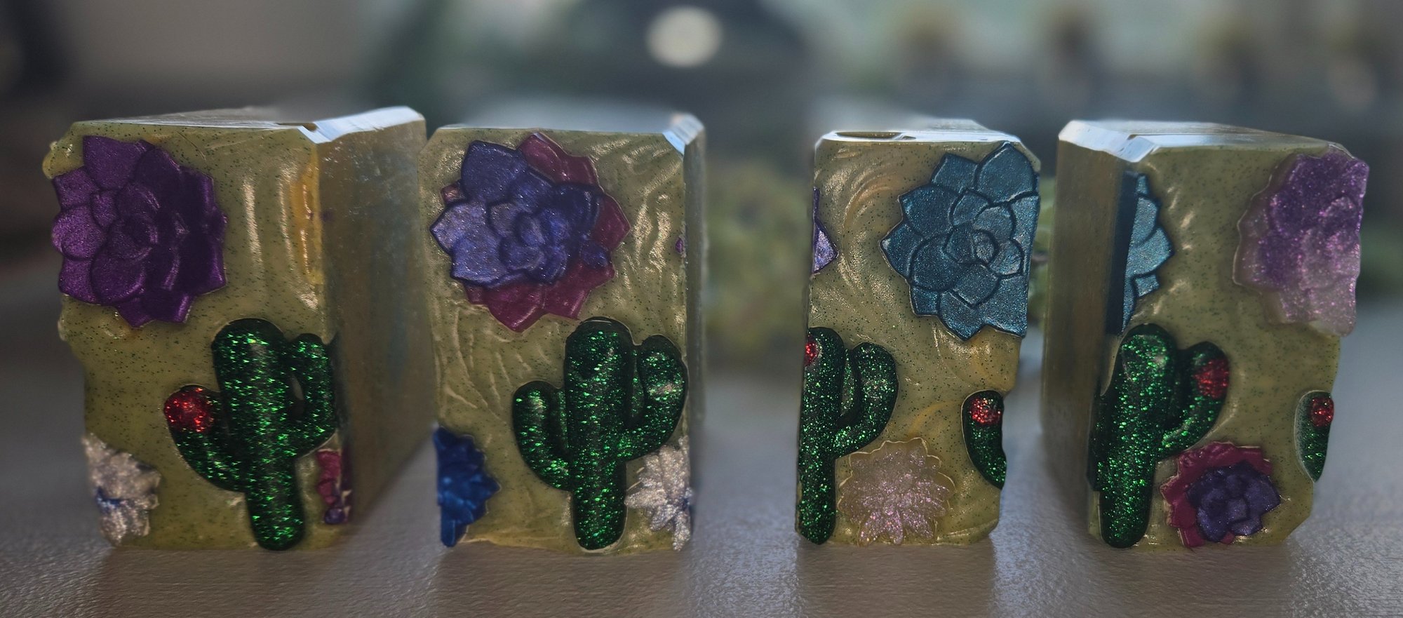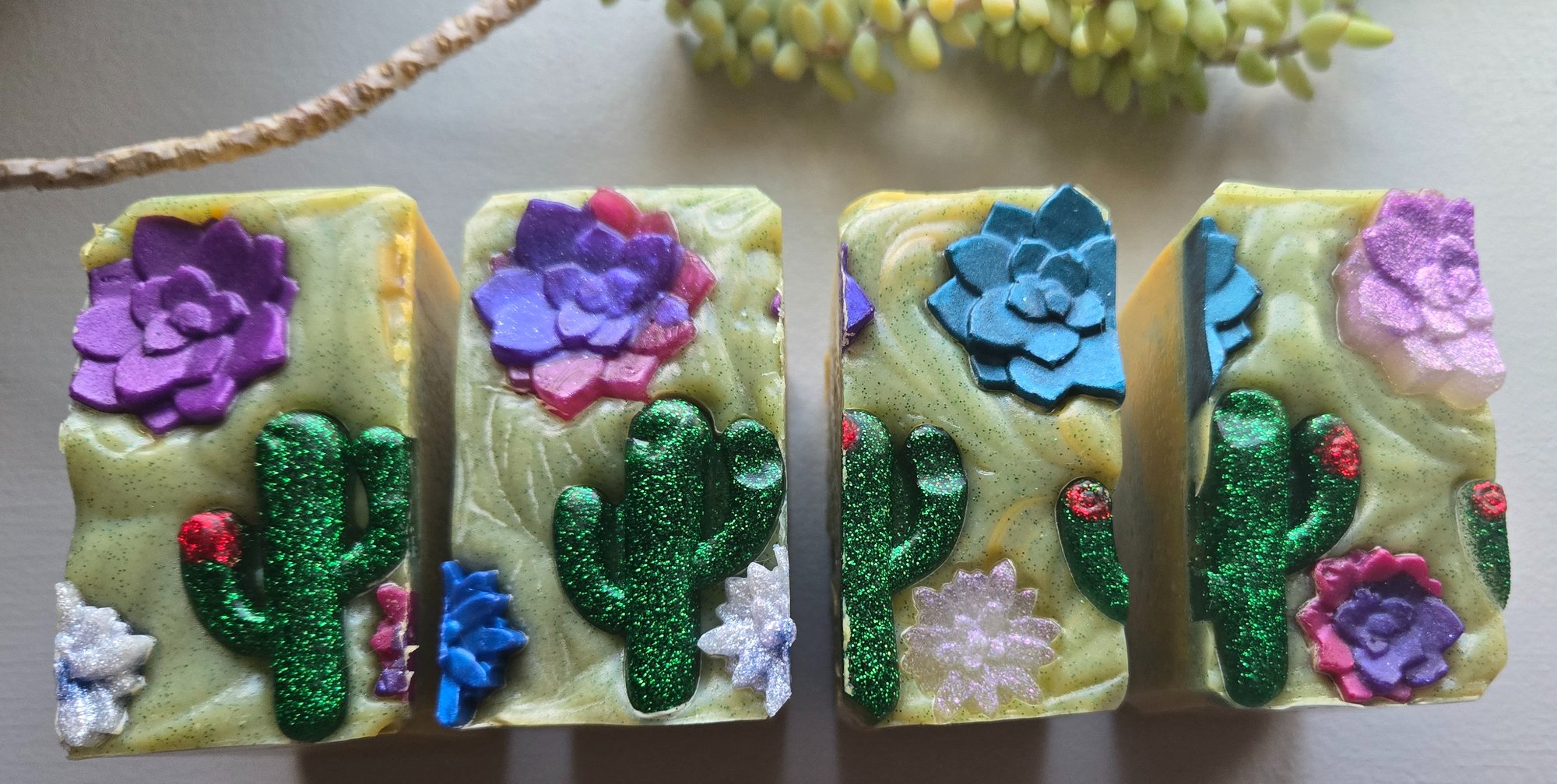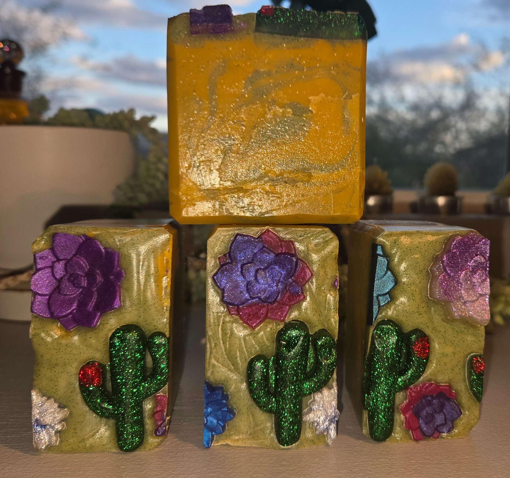 Fun little cacti and flower embeds adorn the top of this bar ~ a nice choice for summer or spring, and the unique feature of these bars is the scent. It smells like....fruity beer but in the best way!